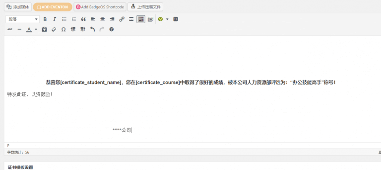 添加证书模板的时候,请将以下参数写在编辑器内,背景图填写在选...
