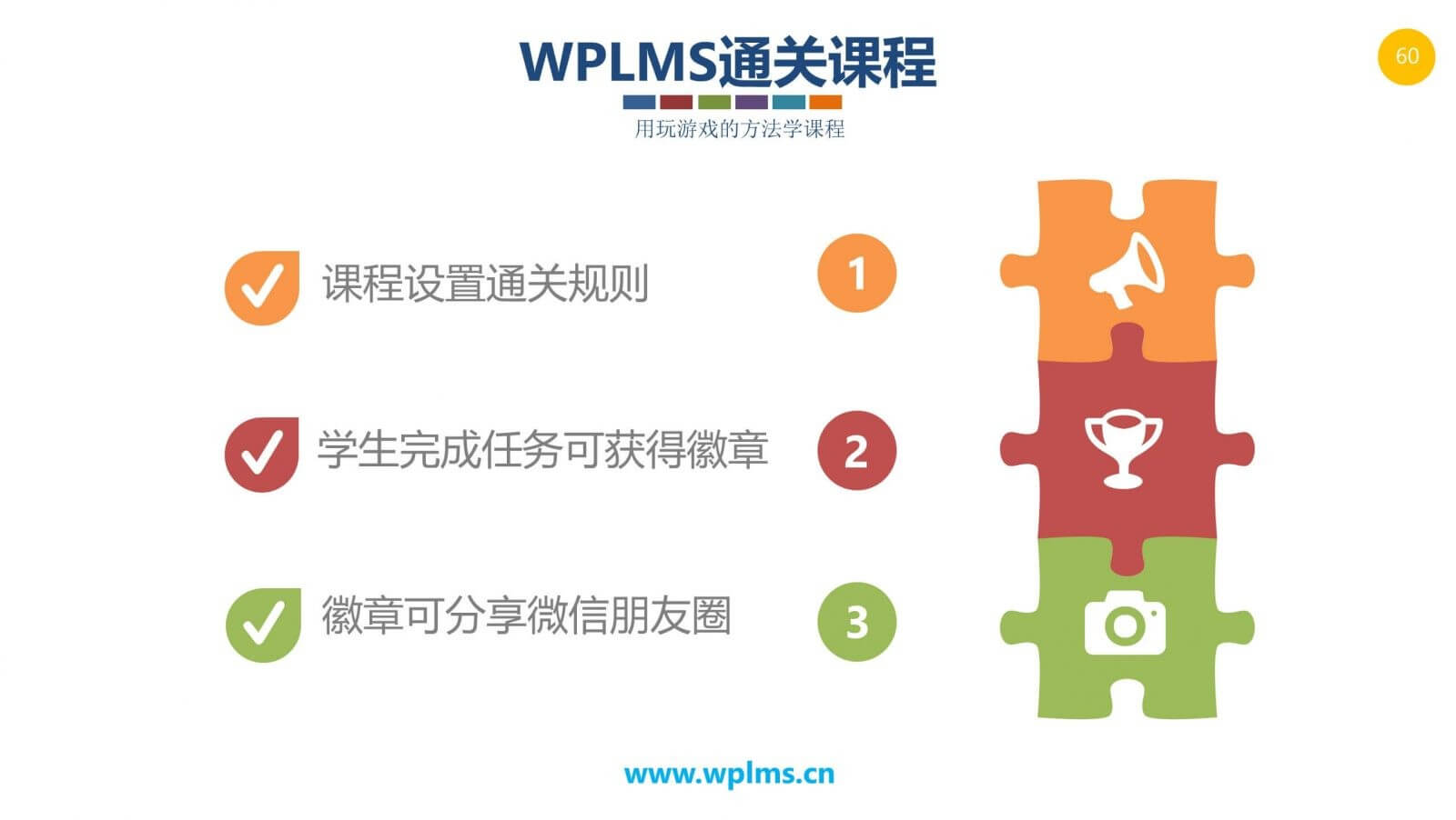 动态资讯WPLMS中国新增通关课程模式2019年04月24日WPLMS中国新增通关课程模式,帮你加速课程销售,新开通课程游戏模式,通关课程,可设置关卡,每过一关获得一枚徽章,自动解锁下一关,获得徽章可验证,可分享朋友圈,加速课程销售,有兴趣联系我!适合幼儿教育,语言学习,企业内训,游戏类课程平台,付费客户免费部署。具体请联系客服。