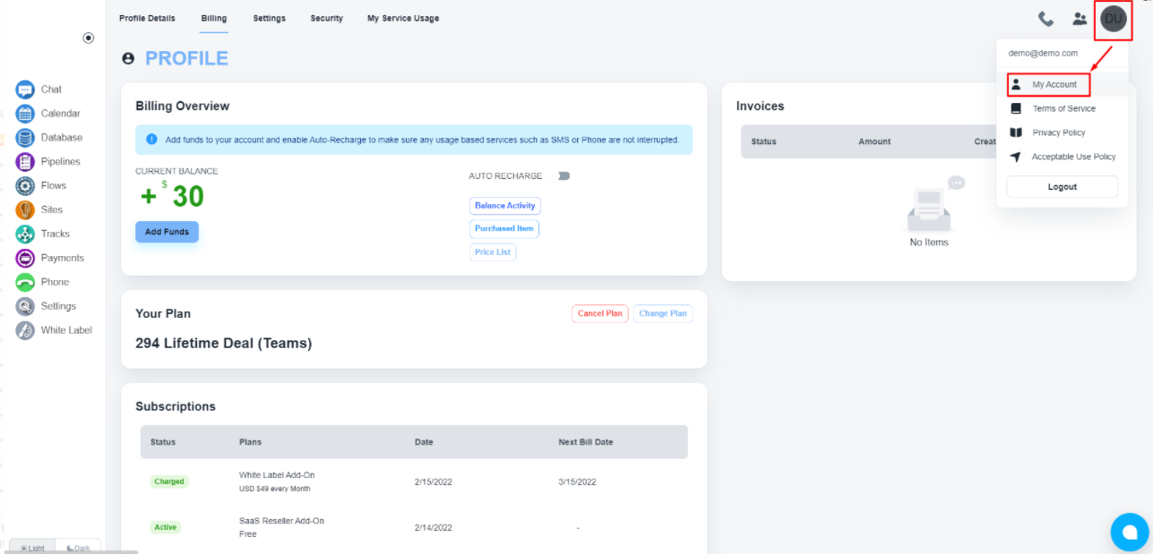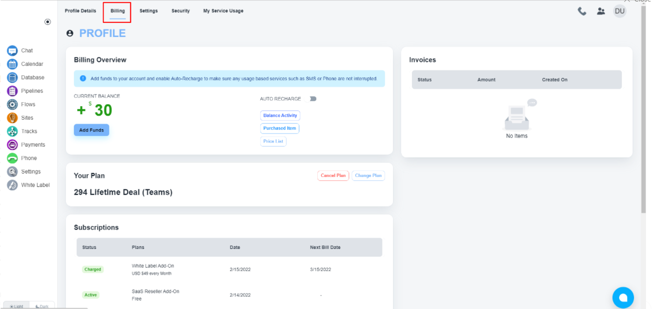 点击“计费”选项卡以获取您的帐户余额、信用卡和订阅的详细信息。