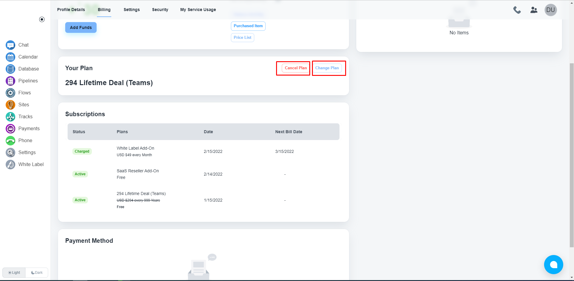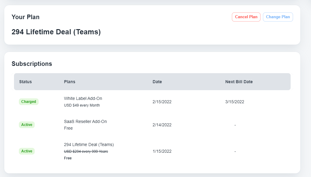 登录到“计费”部分后,在“您的计划”区域下,您将使用这两个按钮,用于取消或升级您的订阅计划。