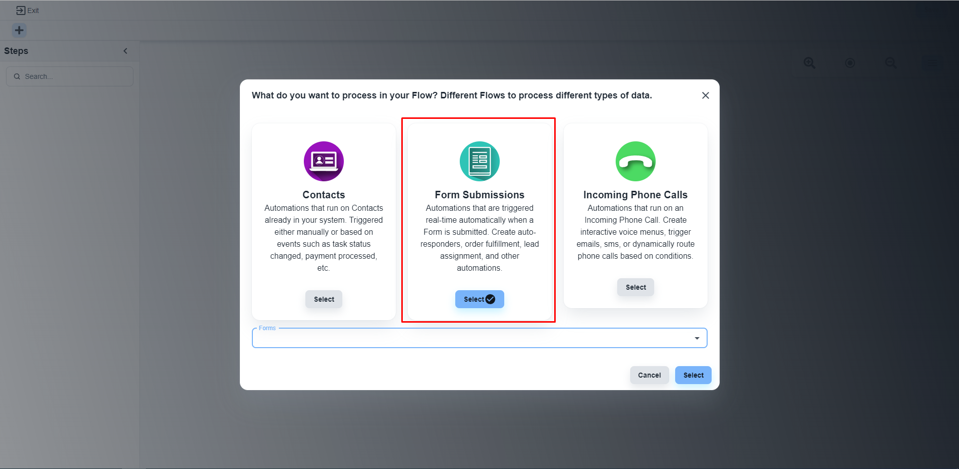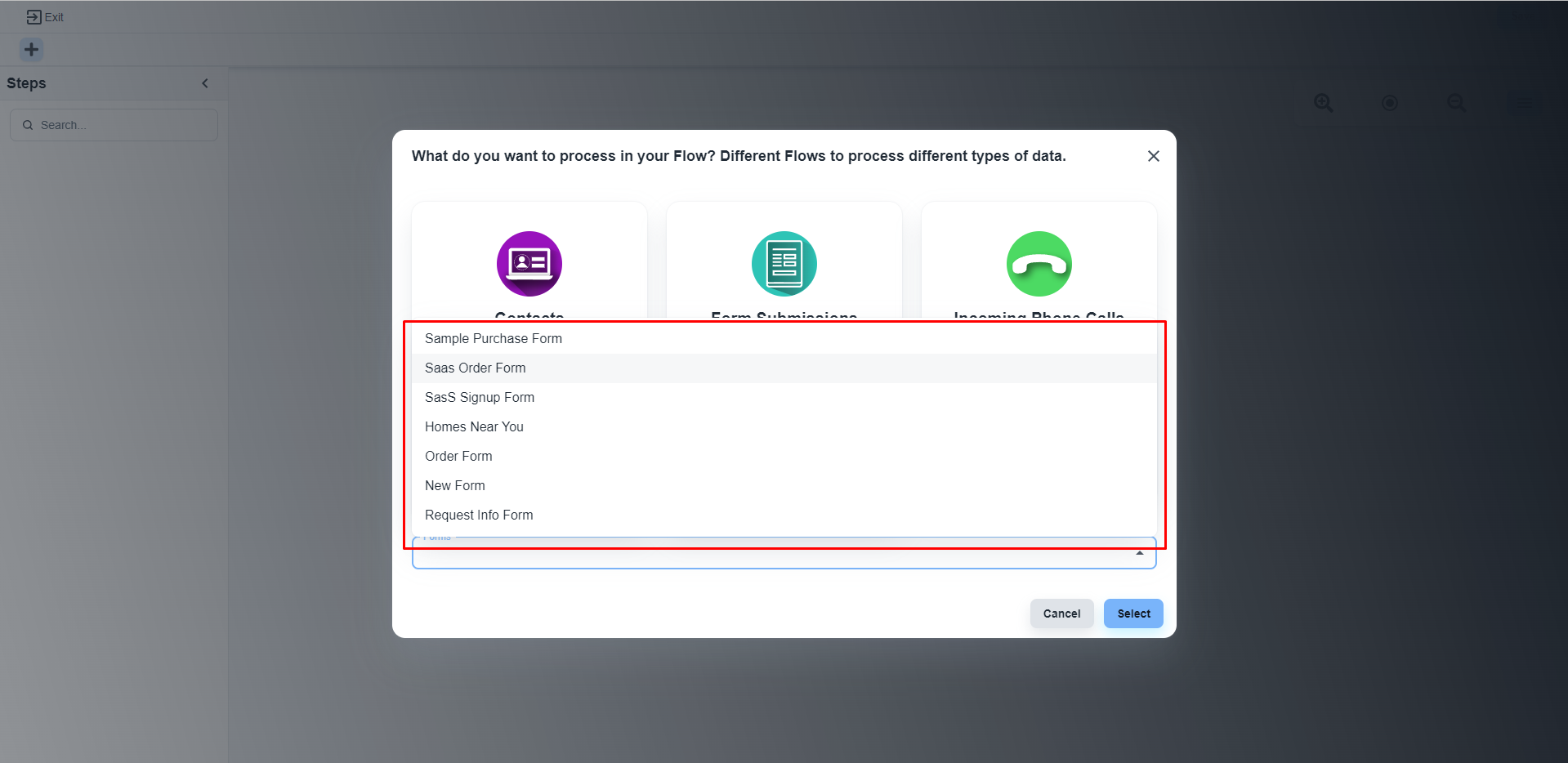 选择该选项后,系统将显示您帐户下所有可用表单的列表,您可以选择所需的表单。