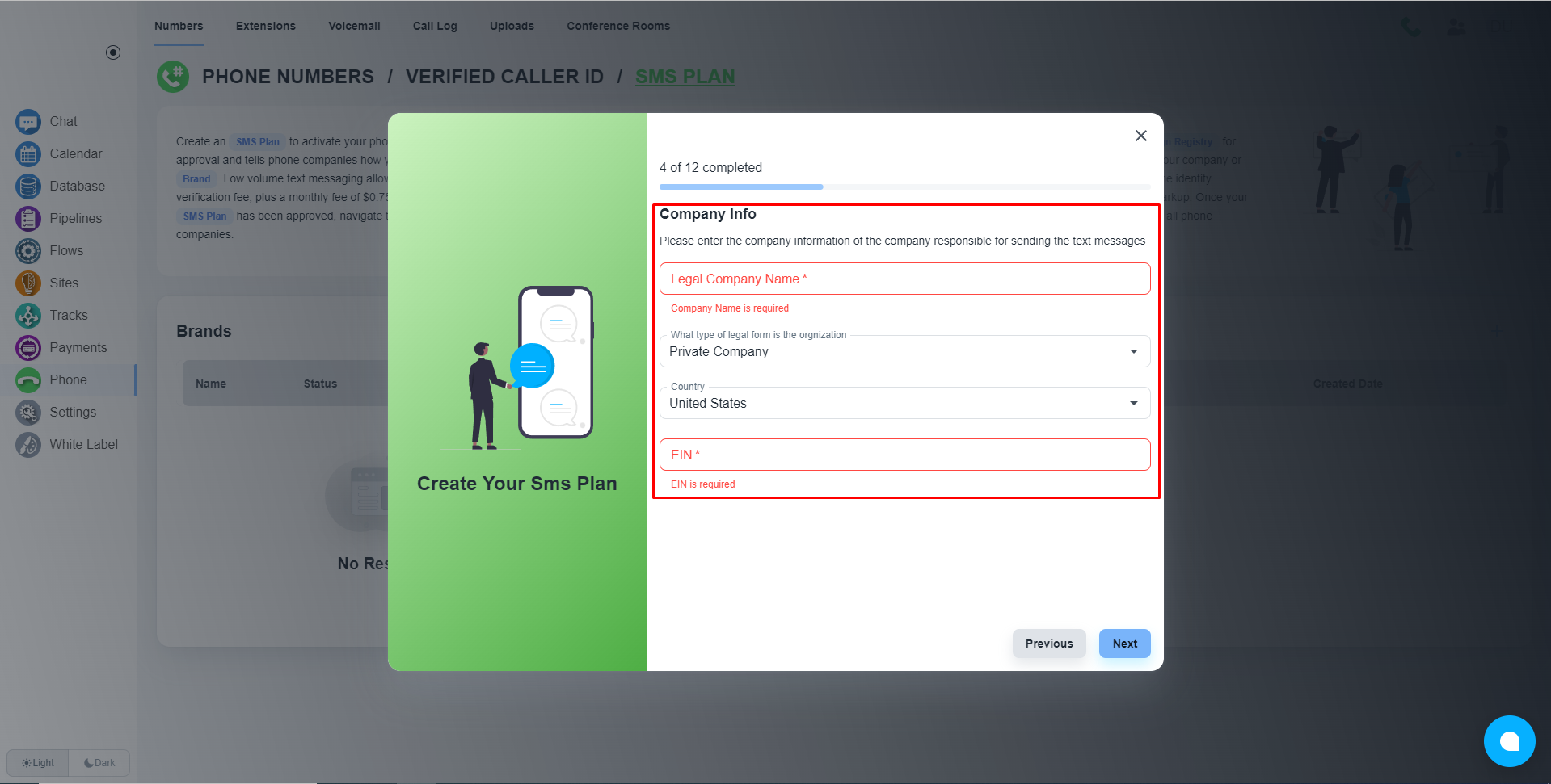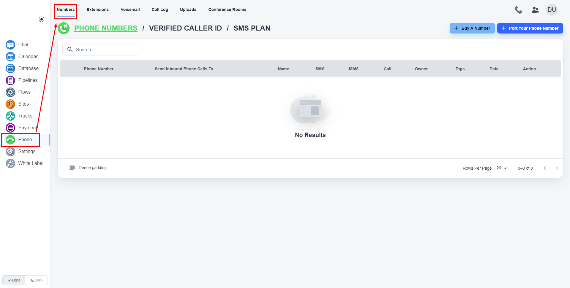 请点击左侧菜单中的“电话”浏览电话号码部分。 打开页面后,单击顶部菜单上的“数字”按钮。