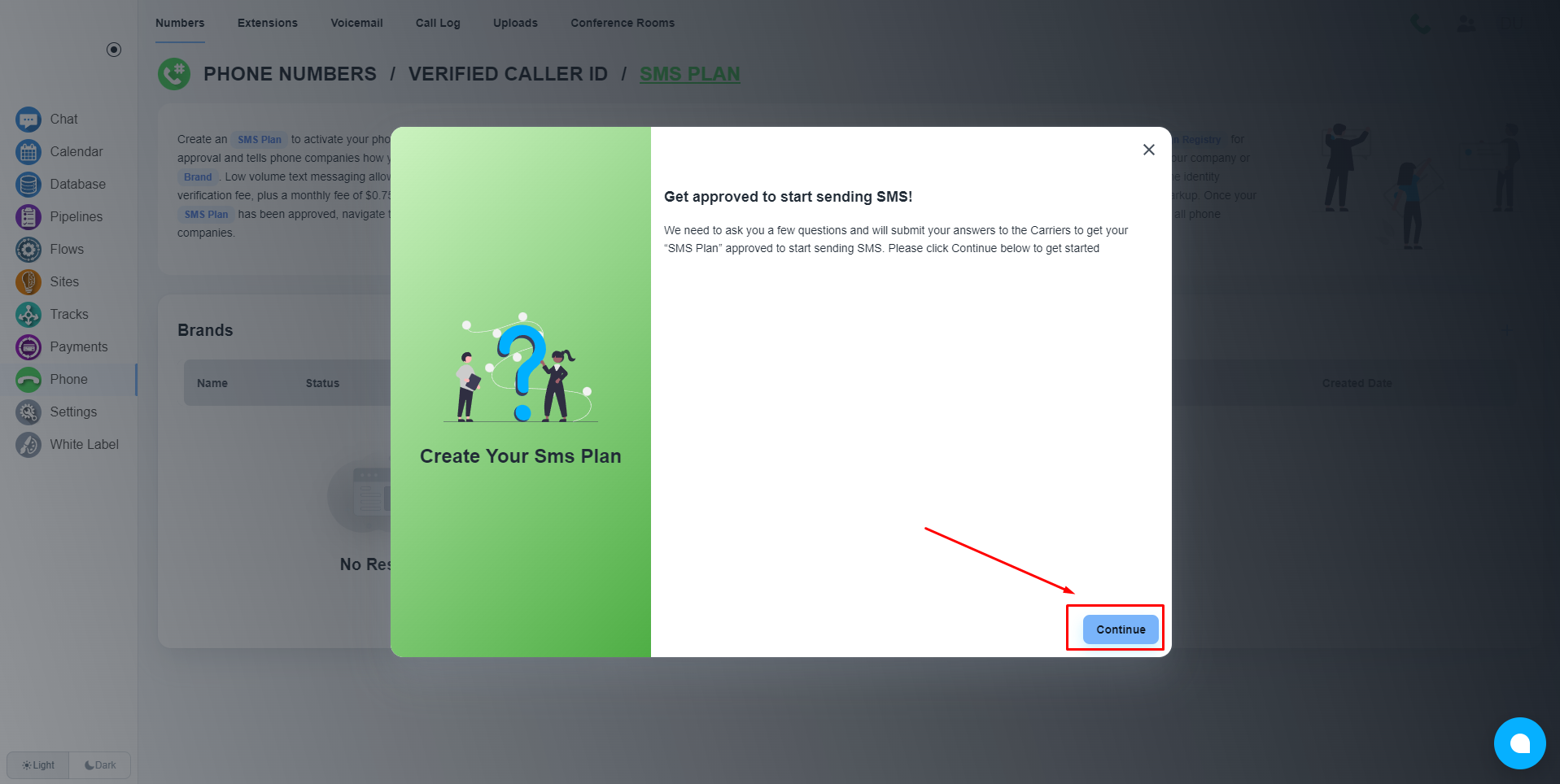 请按下一个按钮并提供详细信息以获得 SMS 计划的批准。
