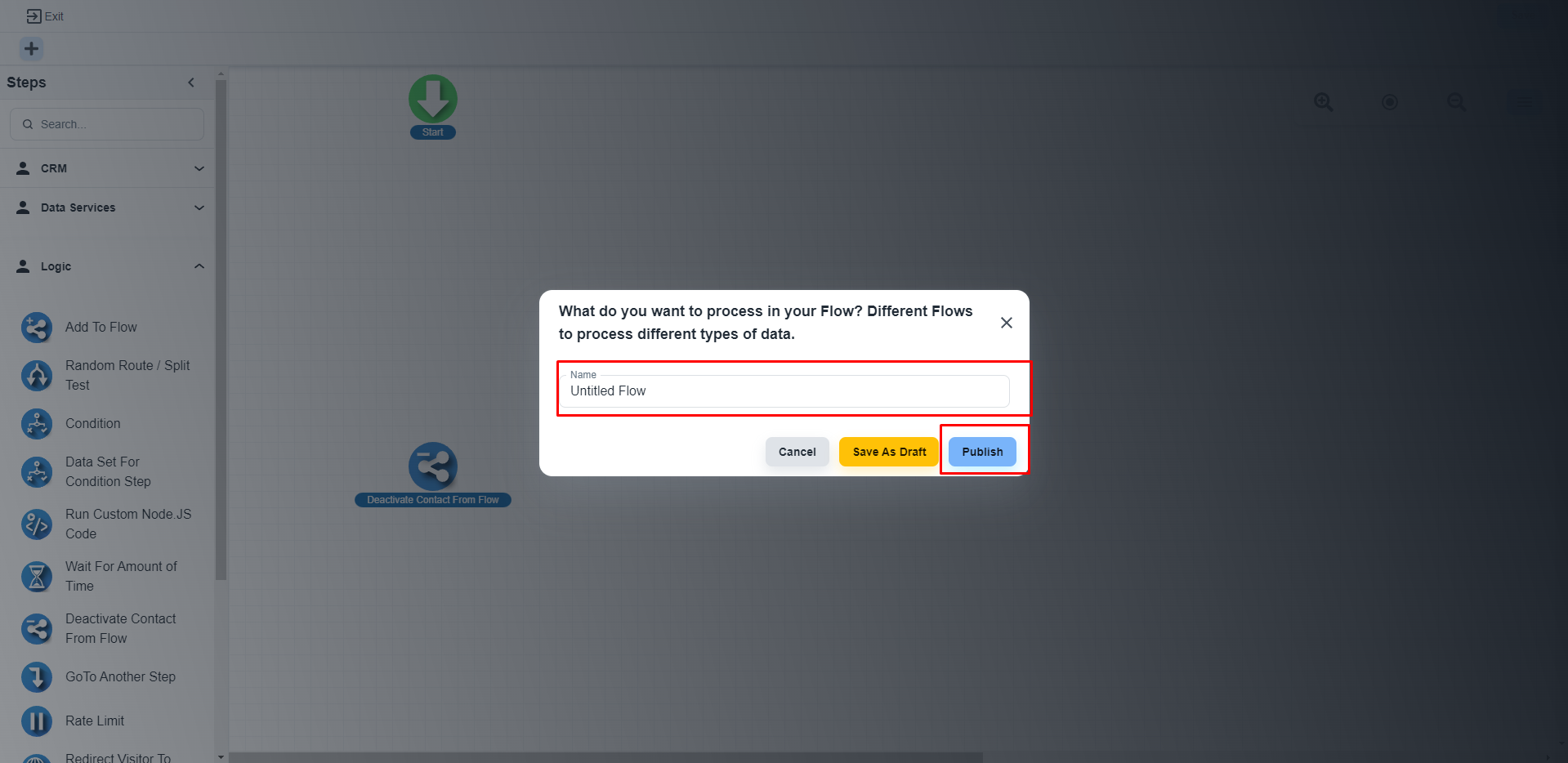 通过单击左侧菜单上的“流程”导航到流程构建器。 然后,当您打开流程页面时,您会在页面顶部看到“流程”的链接,请单击该链接。 单击“创建流程”按钮。