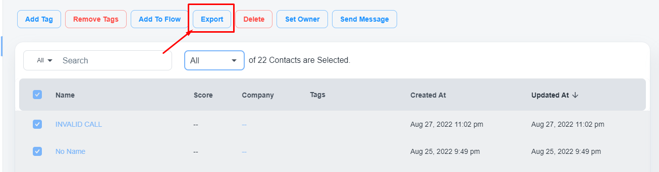 如何导出所有的联系人/潜在客户?2022年09月16日导出线索的步骤打开联系人请导航到左侧菜单栏上的“数据库”选择所有联系人请选中第一个复选框,然后在第二个下拉列表中选择“全部”选项。导出联系人选择所有联系人后,请点击顶部的“导出”按钮导出所有联系人