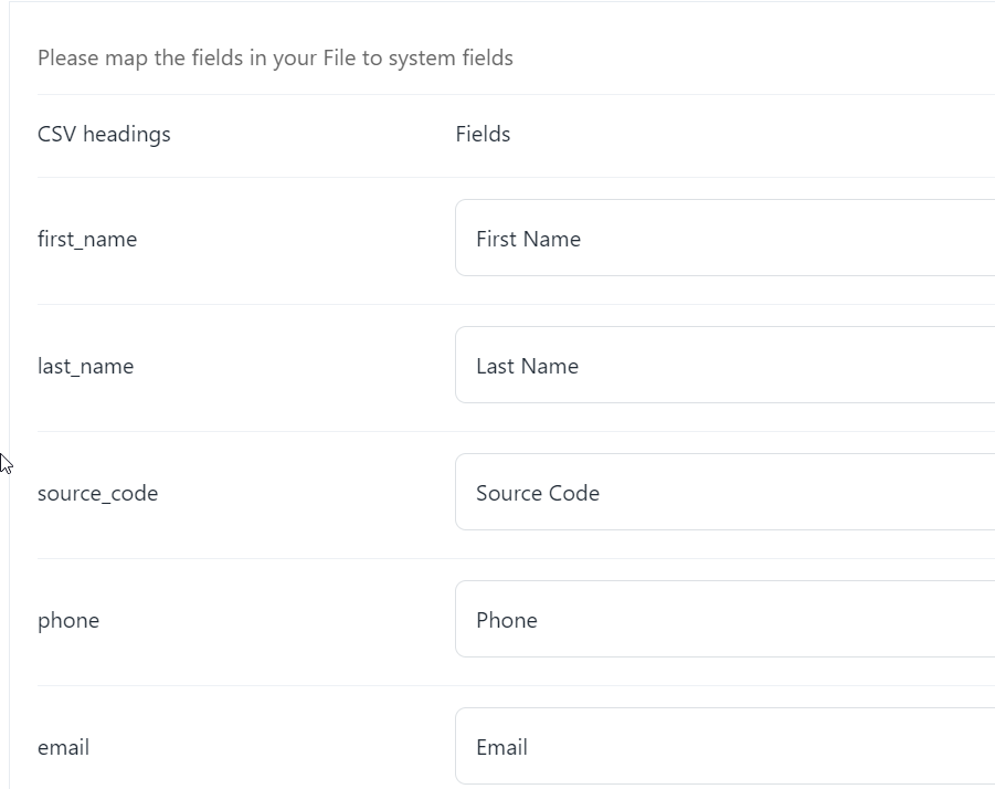 - 通过电子邮件或电话号码匹配 通过选择此选项,您上传的联系人将按电子邮件或电话号码列,与系统中现有的电子邮件或电话号码相匹配。如果电话号码或电子邮件中的任何一个匹配,则意味着联系人已经在系统中,系统将不会处理您上传文件中的新联系人。