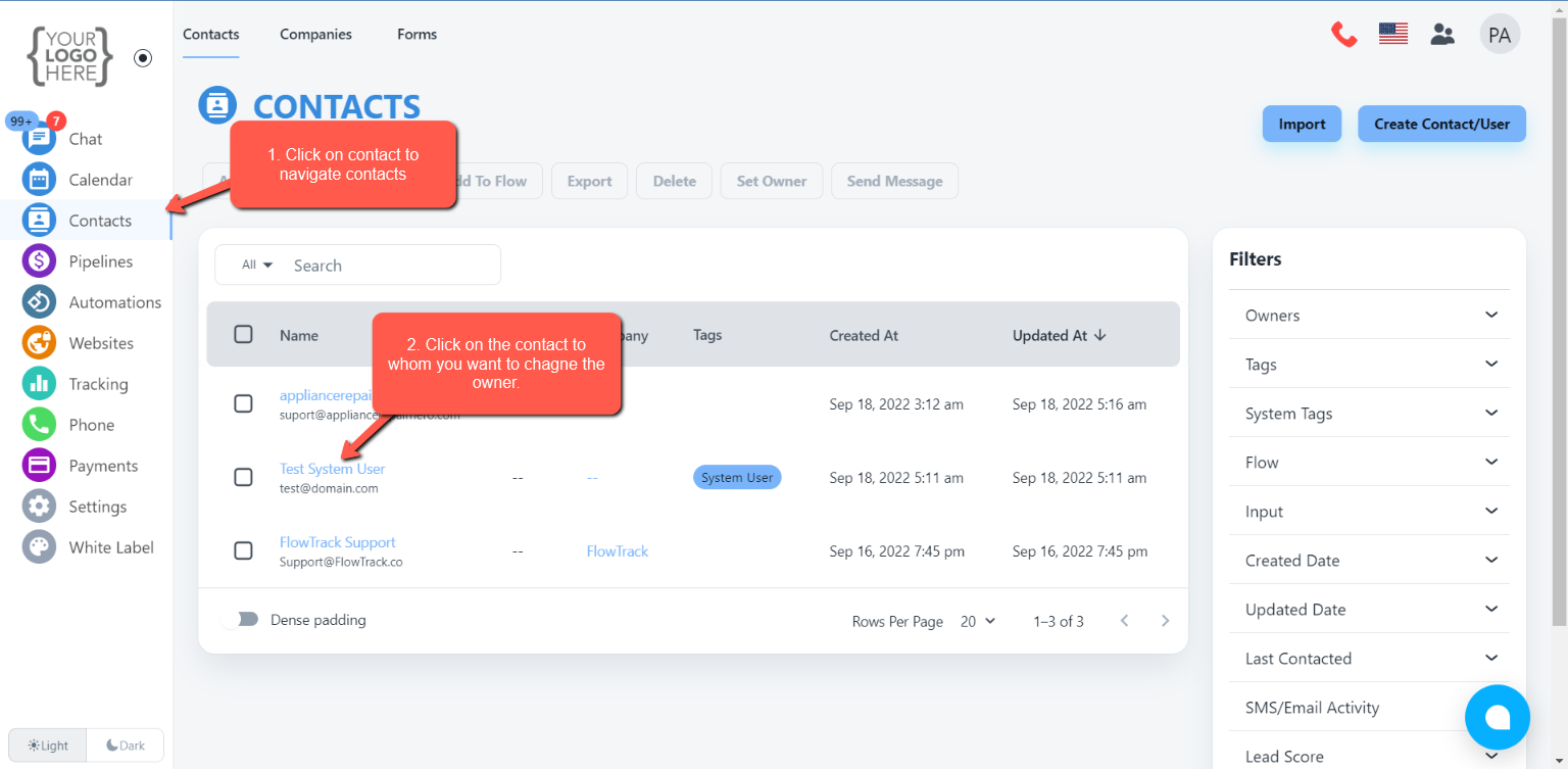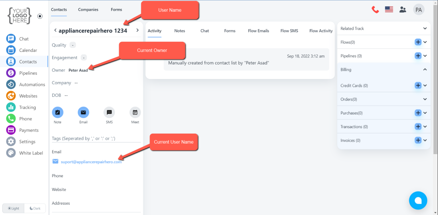 4.当您选择所需的用户后,您的联系人所有者将被更改