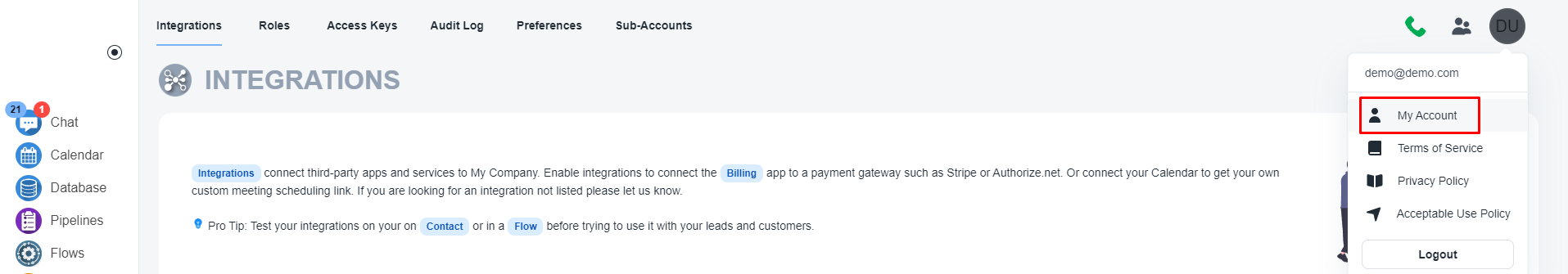 请单击仪表板左上角的图标并访问“我的帐户”页面