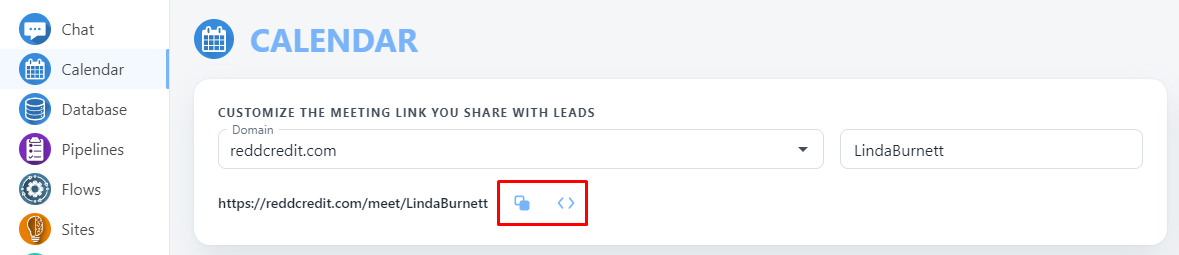 如何获取日历链接和集成链接?2022年09月24日获取日历链接的步骤请导航到左侧菜单栏上的“日历”链接然后点击设置齿轮图标在这里,您将看到日历的链接第一个用于会议链接,第二个用于集成代码。 使用该集成代码,您将能够将该日历添加到您的网站