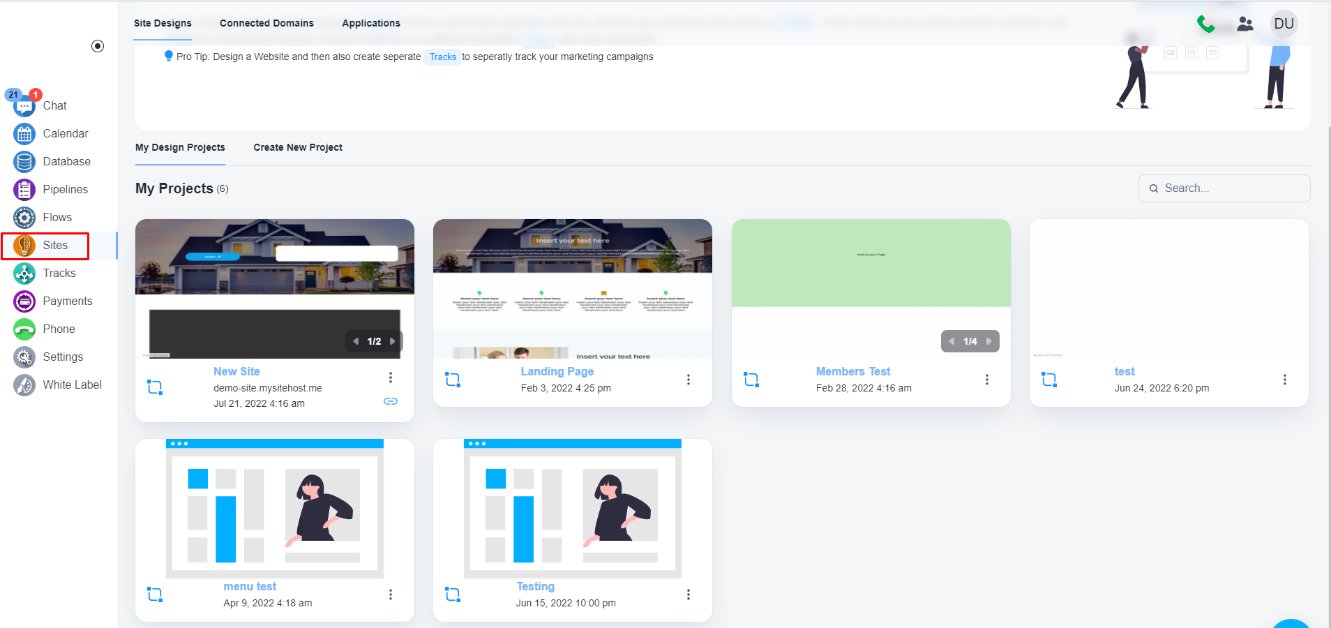 请导航到左侧菜单栏上的“站点”并打开您的项目。
