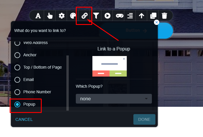 添加按钮以将弹出窗口链接到按钮