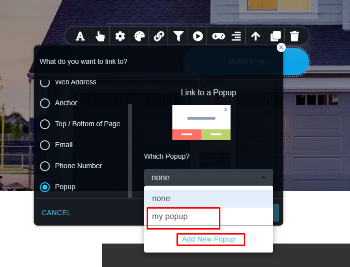 在这里您可以选择现有的弹出窗口,也可以创建新的弹出窗口