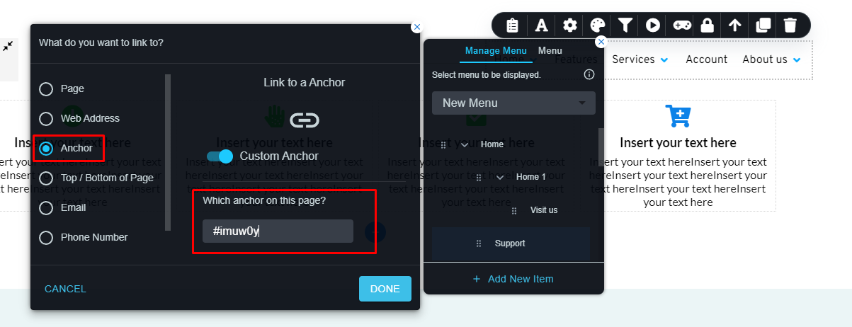 请选择“Anchor”选项并在字段上设置带有“#”前缀的 id 值