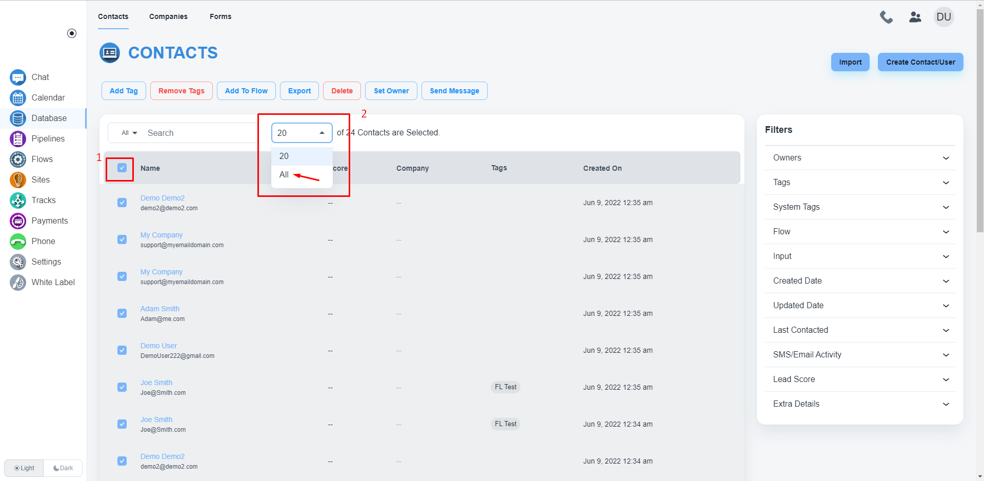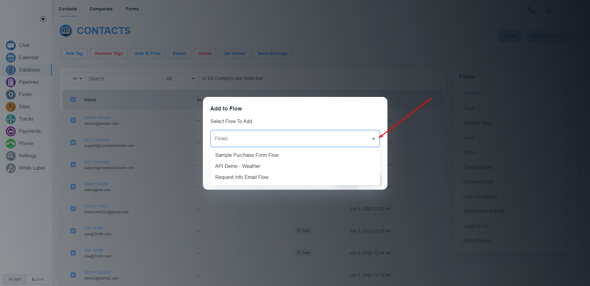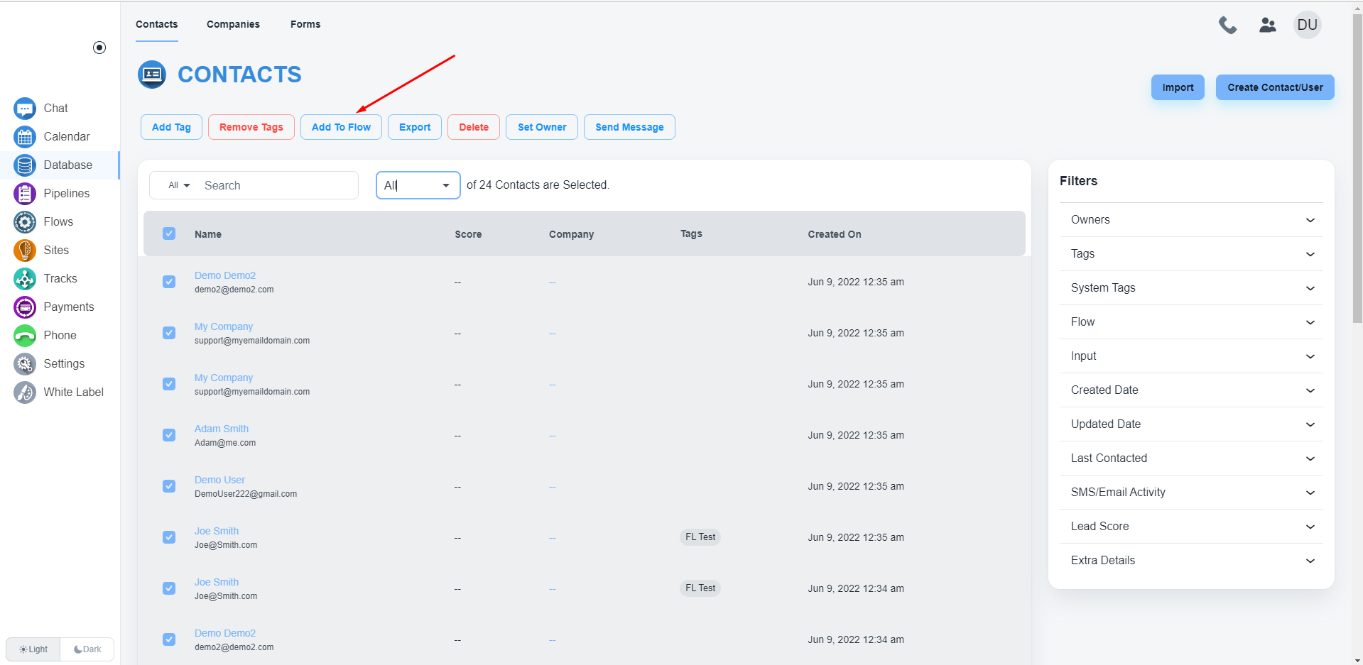 选择所有联系人后,单击“添加到流程”按钮将所有联系人添加到流程中