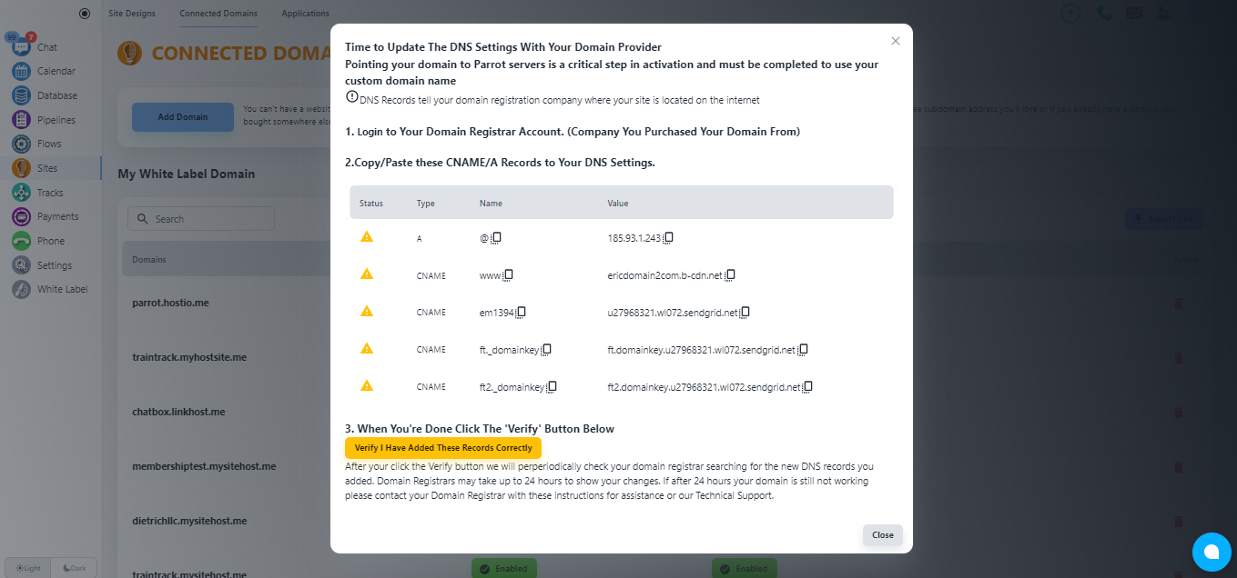 将所有这些 DNS 记录添加到您的域管理器后,请等待一段时间以进行 DNS 传播。 可能需要 24-48 小时。