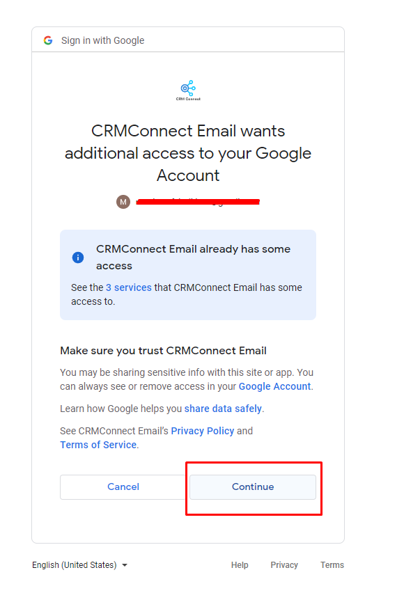 系统将引导您连接您的 Gmail/Google Workspace 帐户