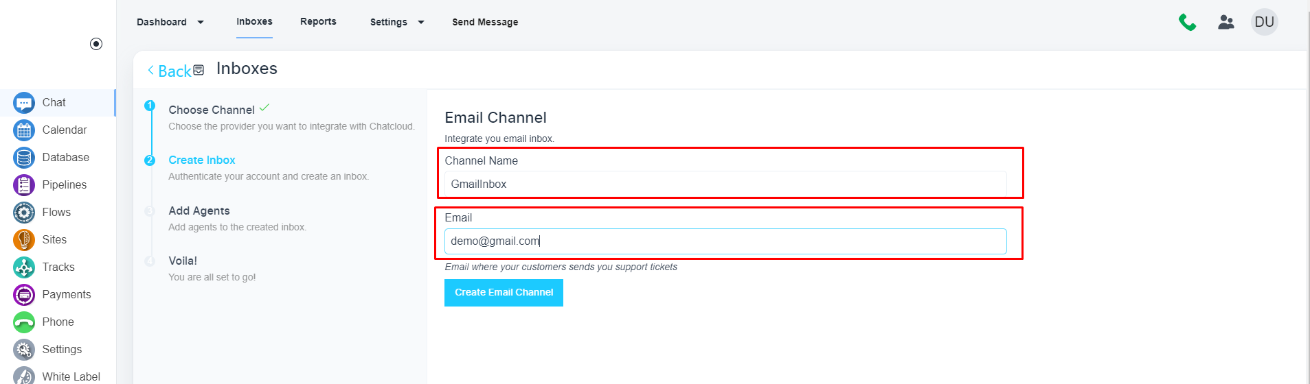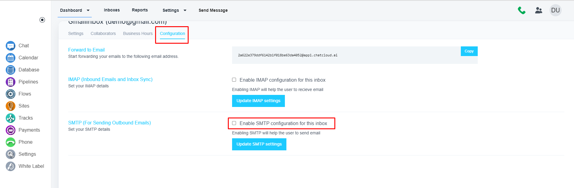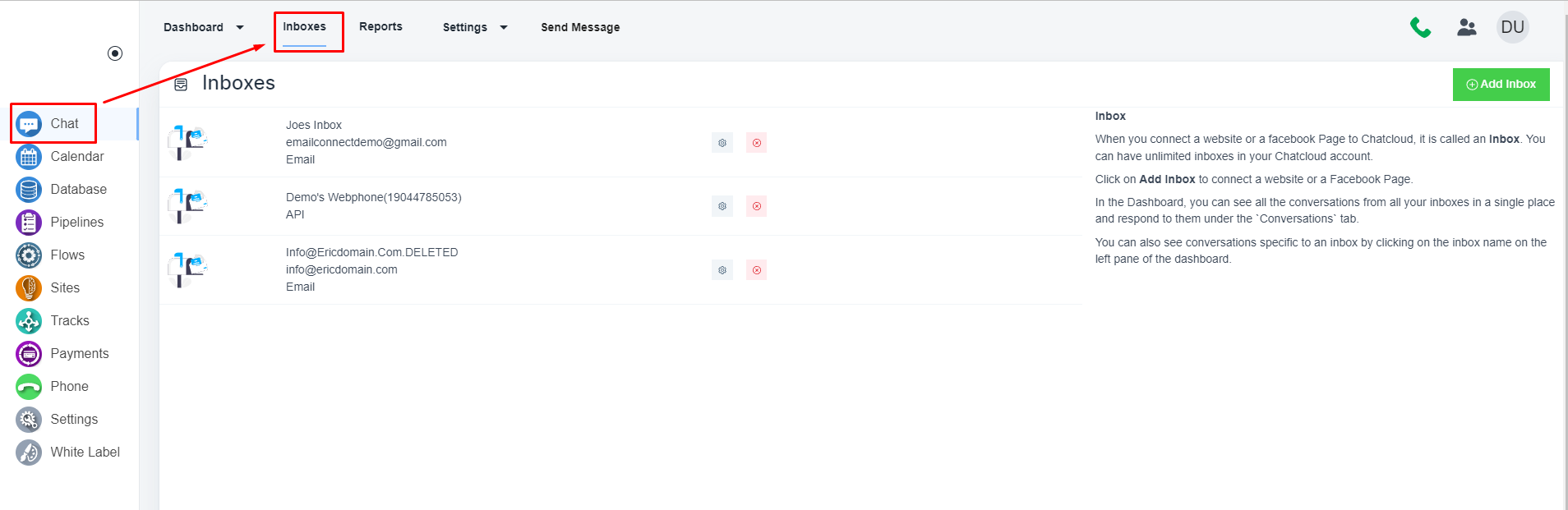 请导航到左侧菜单上的“聊天”。 页面打开后,请单击顶部菜单栏上的“收件箱”。
