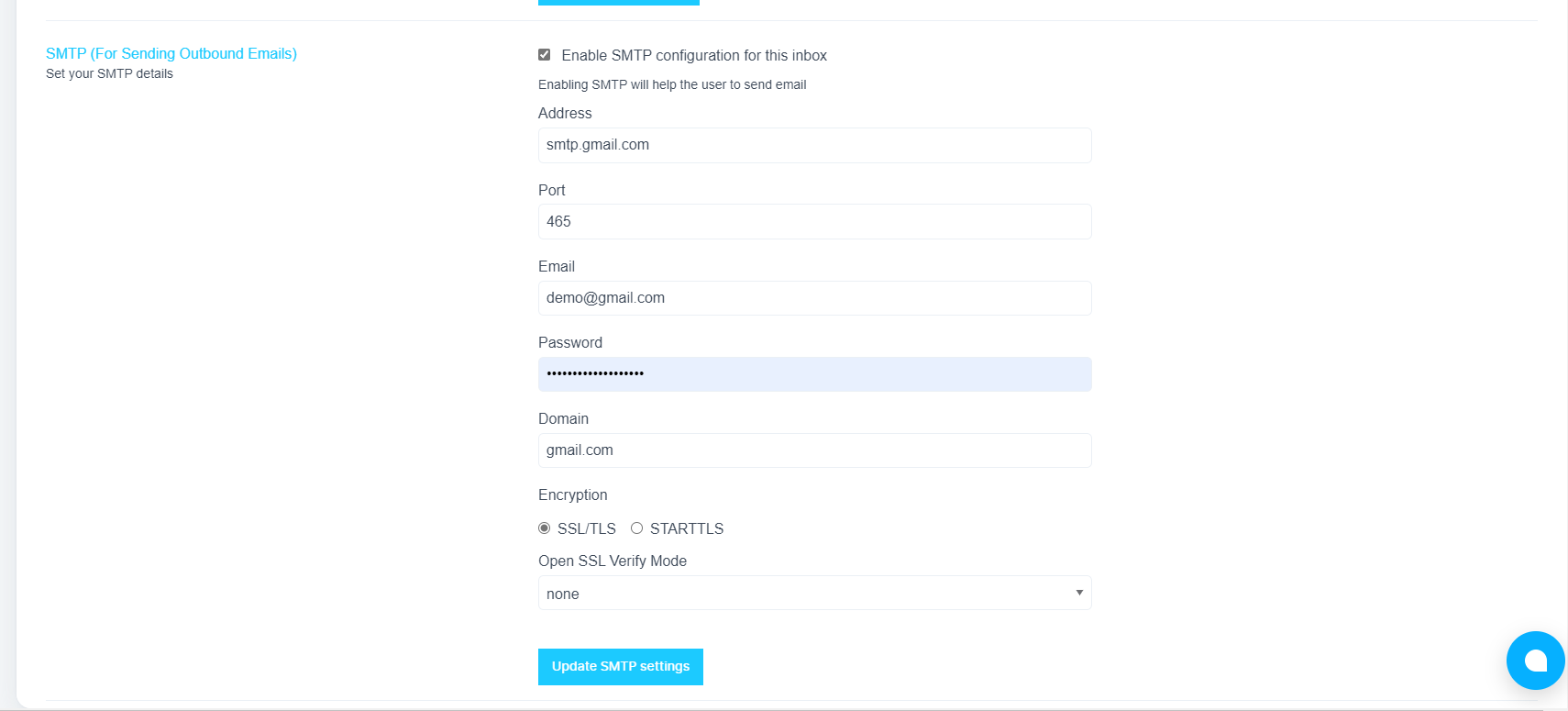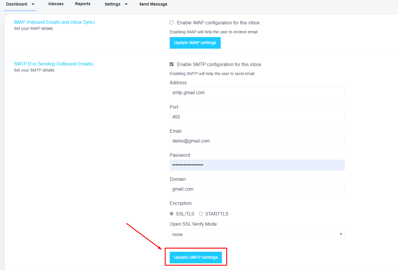 配置完成后,请点击“更新 SMTP 设置”按钮
