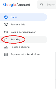转到您的 Google 帐户,然后在左侧面板中选择“安全”。