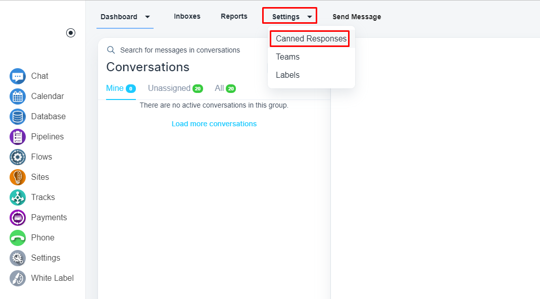 在顶部菜单栏上,有一个“设置”菜单。 请点击下拉菜单并选择“预设回复”