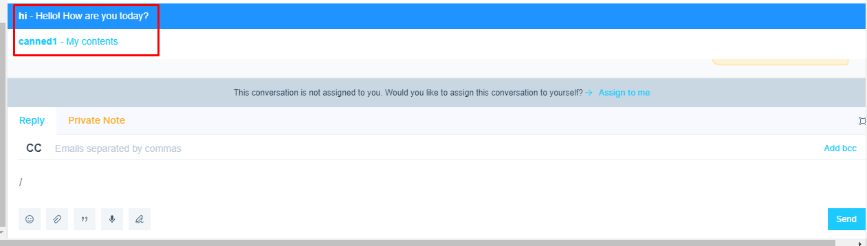 发送消息时,请输入“/”以查看所有预设消息。 如:您可以简单地键入 /canned1 来输入该内容。