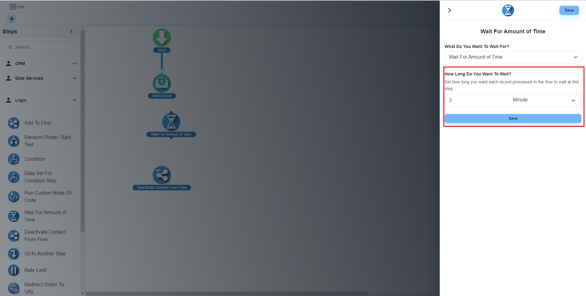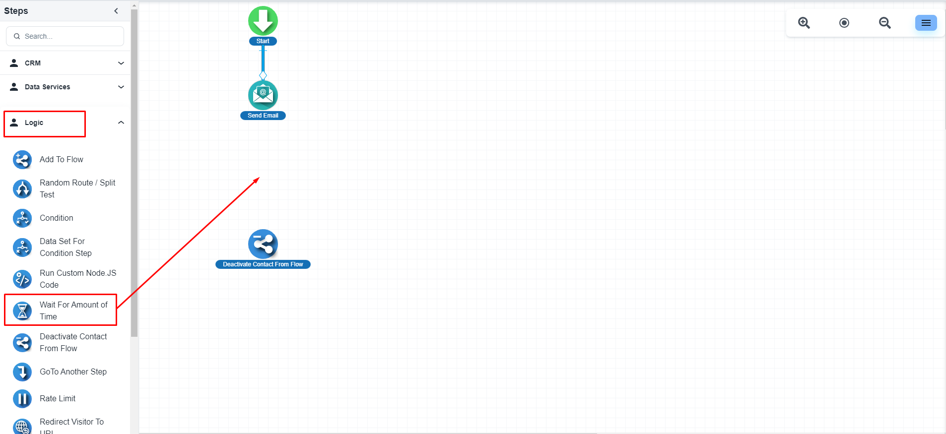 在“逻辑”部分下,您将有“等待一定的时间”步骤。 请在最后一步之前将此步骤添加到您的流程中。