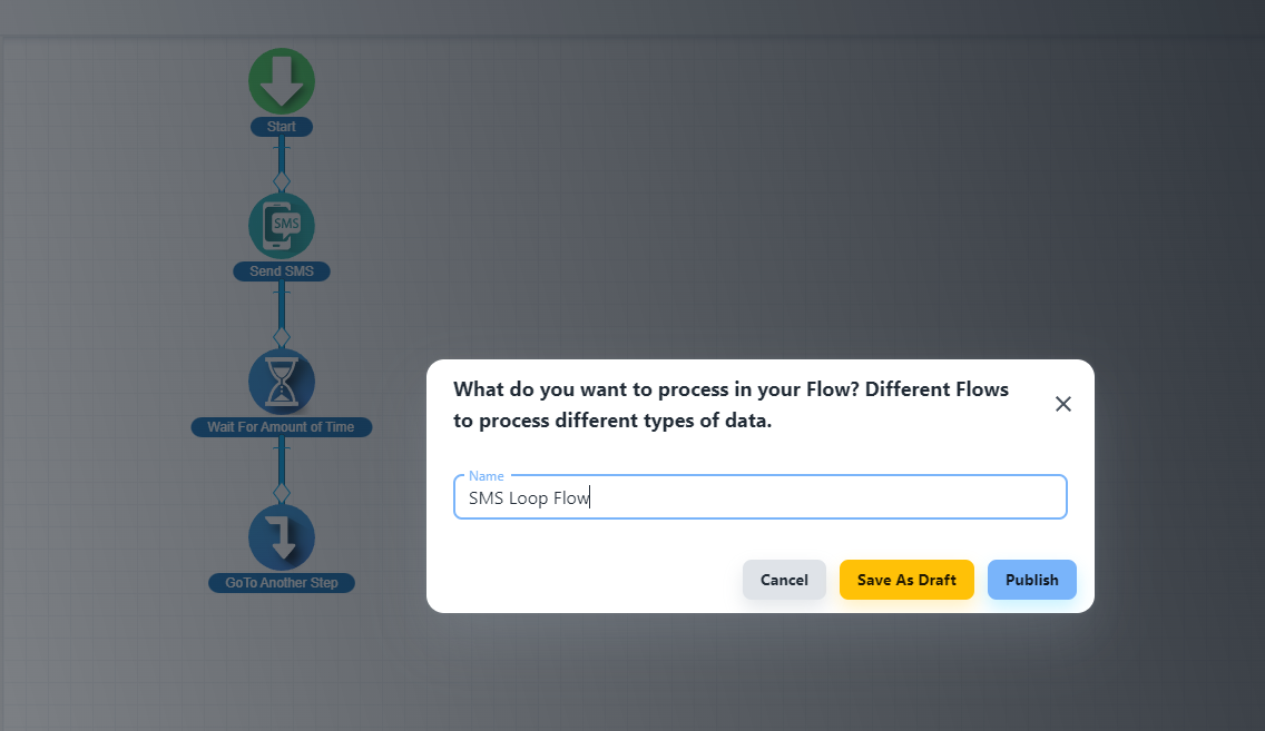 在某些情况下,您可能需要在流程中创建一个循环,例如您希望每 7 天发送一次相同的电子邮件。 系统支持创建这种类型的流程。