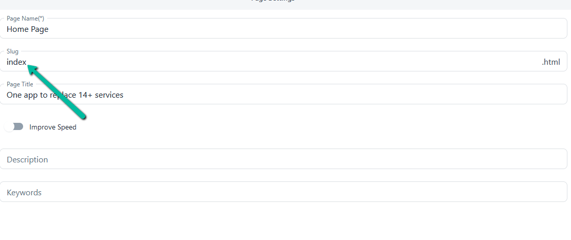 6、单击 Slug 文本字段并在此处输入“index”。