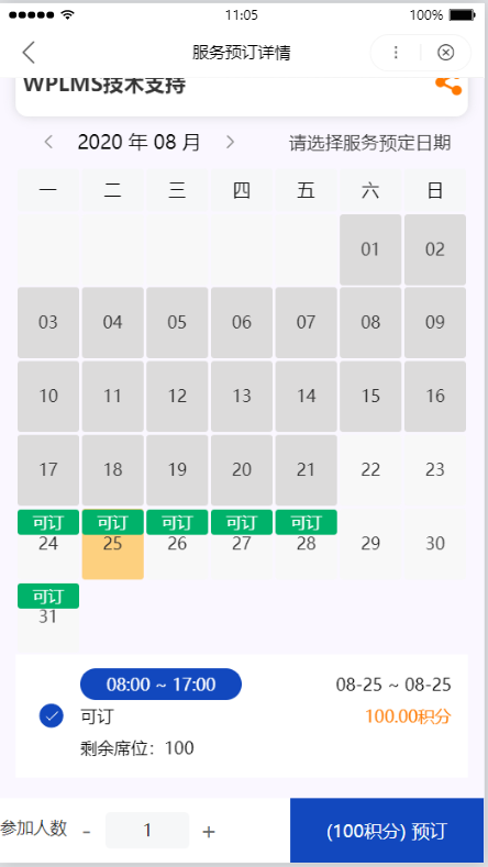 可实现在线预约课程,预约考试,或预约直播。(支持按天、按次、按时间段约定,可以使用积分或现金交易)
