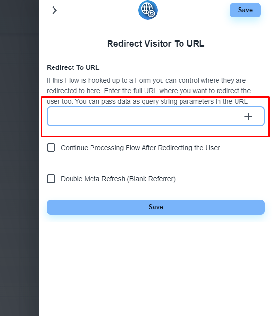 添加“将访问者重定向到 URL”步骤